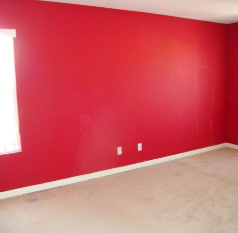 Overall, the room had a great layout, but as you can see, her new bedroom called for a fresh new look. Our first step needed to start making some changes was a new coat of fresh paint, removal of the outdated vertical blinds and old stained carpet. (Small nook on the right corner.)
